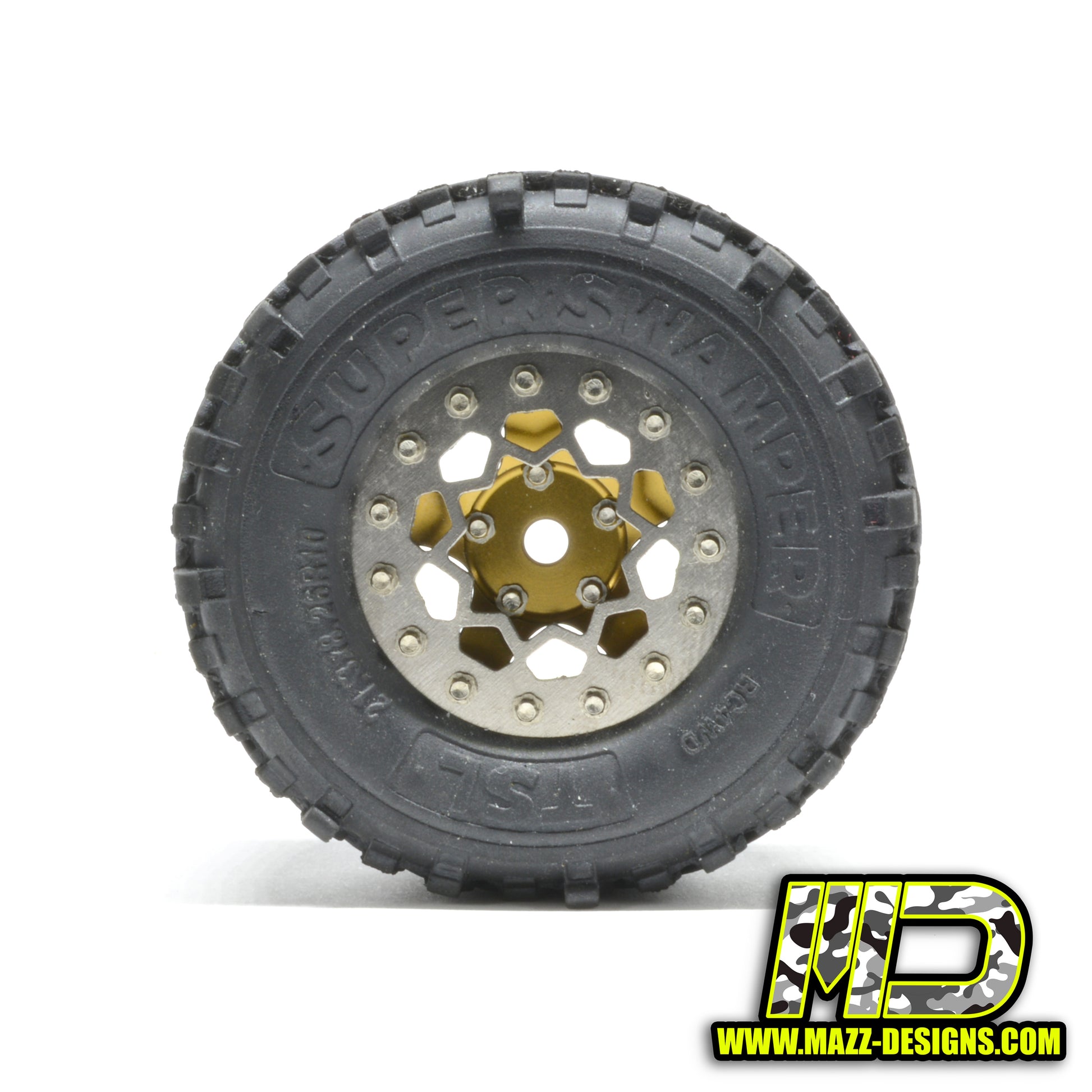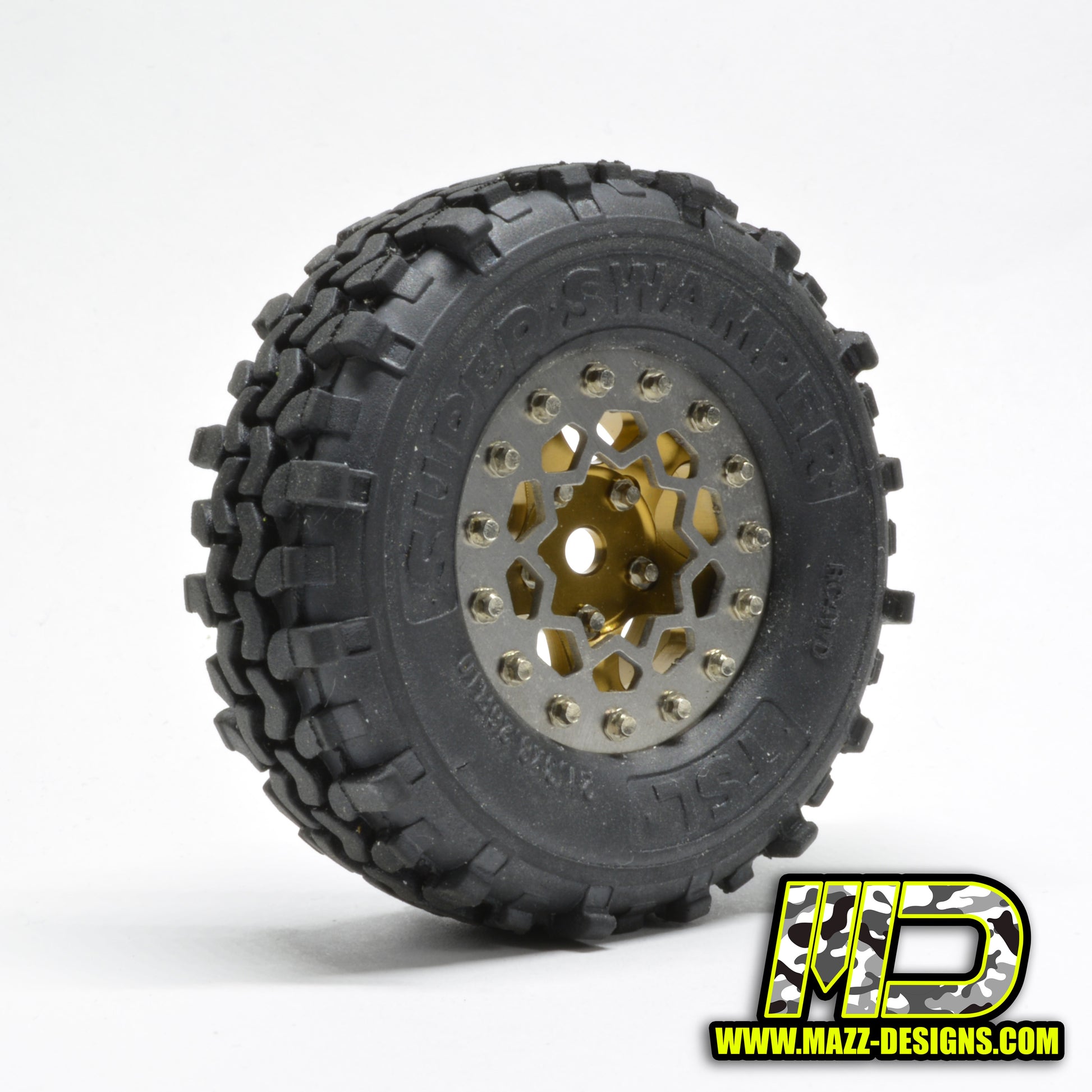 Introducing the V2 D10 Dozer beadlock rings for Treal type b/I wheels. These are a slimmed down and more scale revision of our original design Designed and cut right here in the U.S.A with American made Titanium. All beadlocks come 100% ready to install. Just remove the original beadlock and install these beauties using the original hardware. Due to the nature of the design and the slightly larger O.D. these rings give a much more realistic look where the bead of the tire meets the beadlock. Get ready to break all your buddies' necks when you show up with these bad boys on your rig!