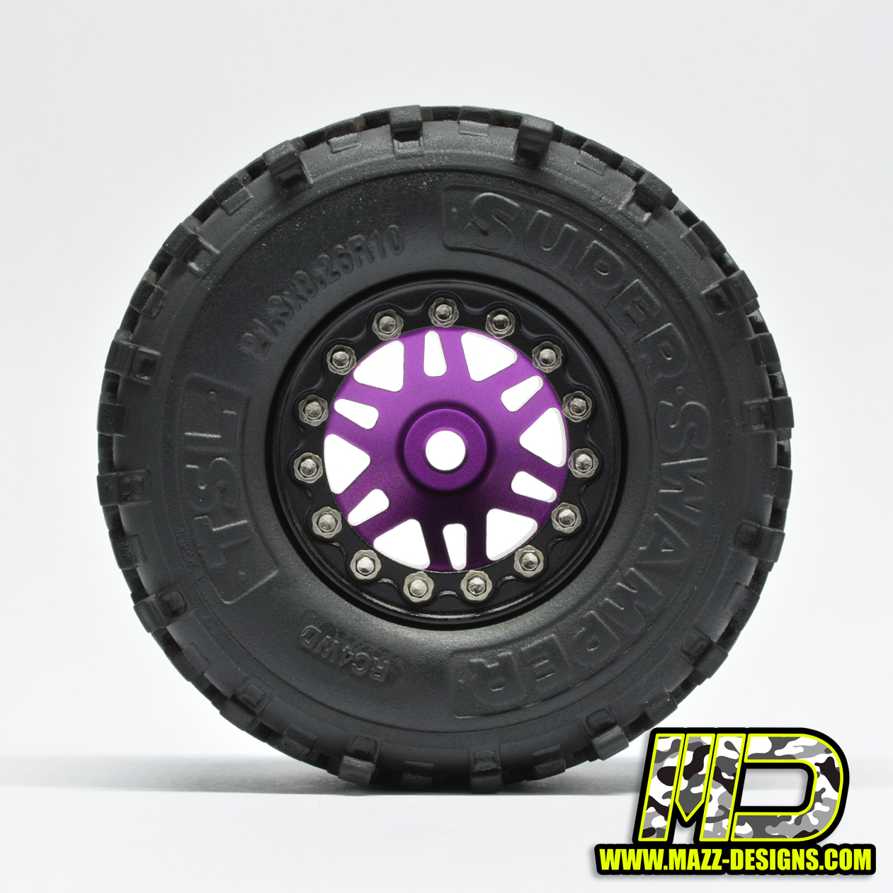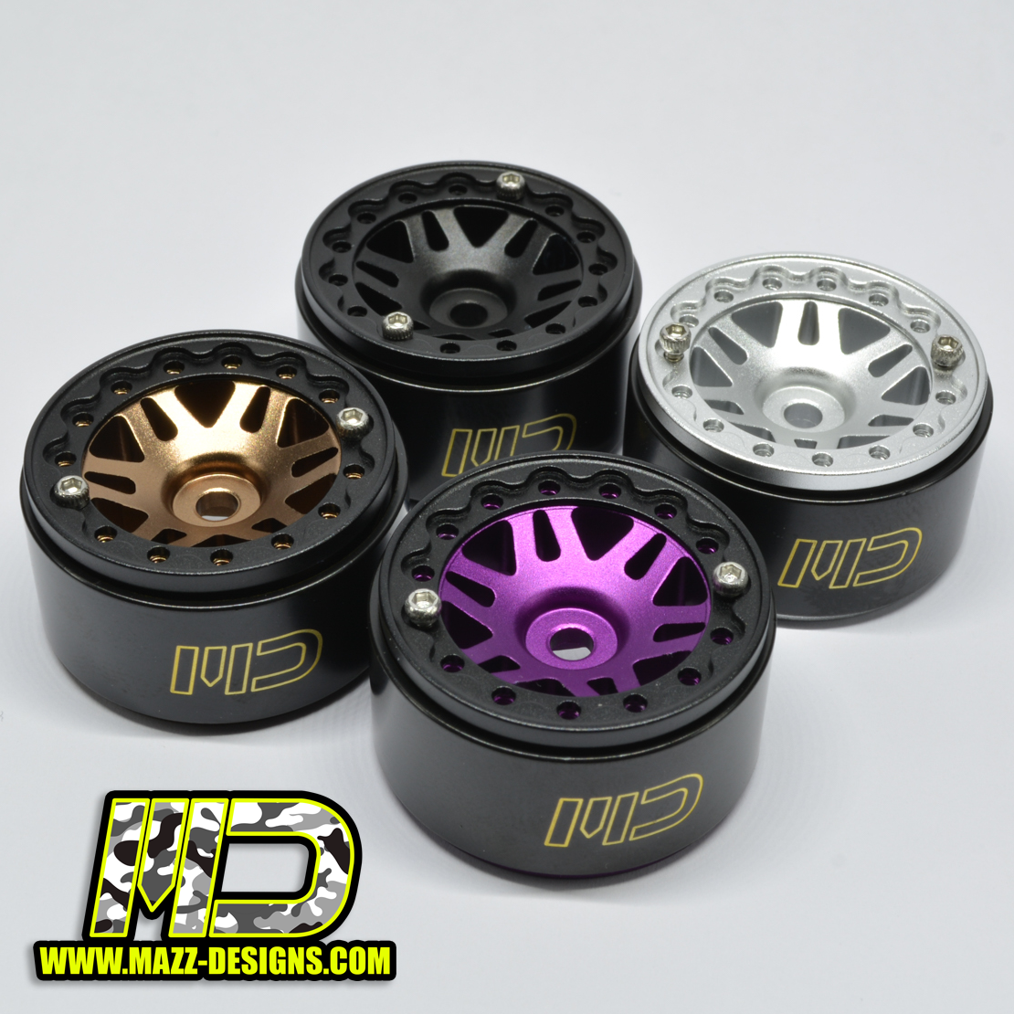 Mazz Designs V2 Double Star beadlock wheels. All new face profile and offset! Comes with brass inner rings for added weight. Also included is standard hardware that we recommend using in a 4 bolt star pattern to set the bead. Then install scale hardware with supplied tool. Then remove the 4 initial standard screws and replace with scale screws. Please visit my YouTube channel for a full install tutorial video.