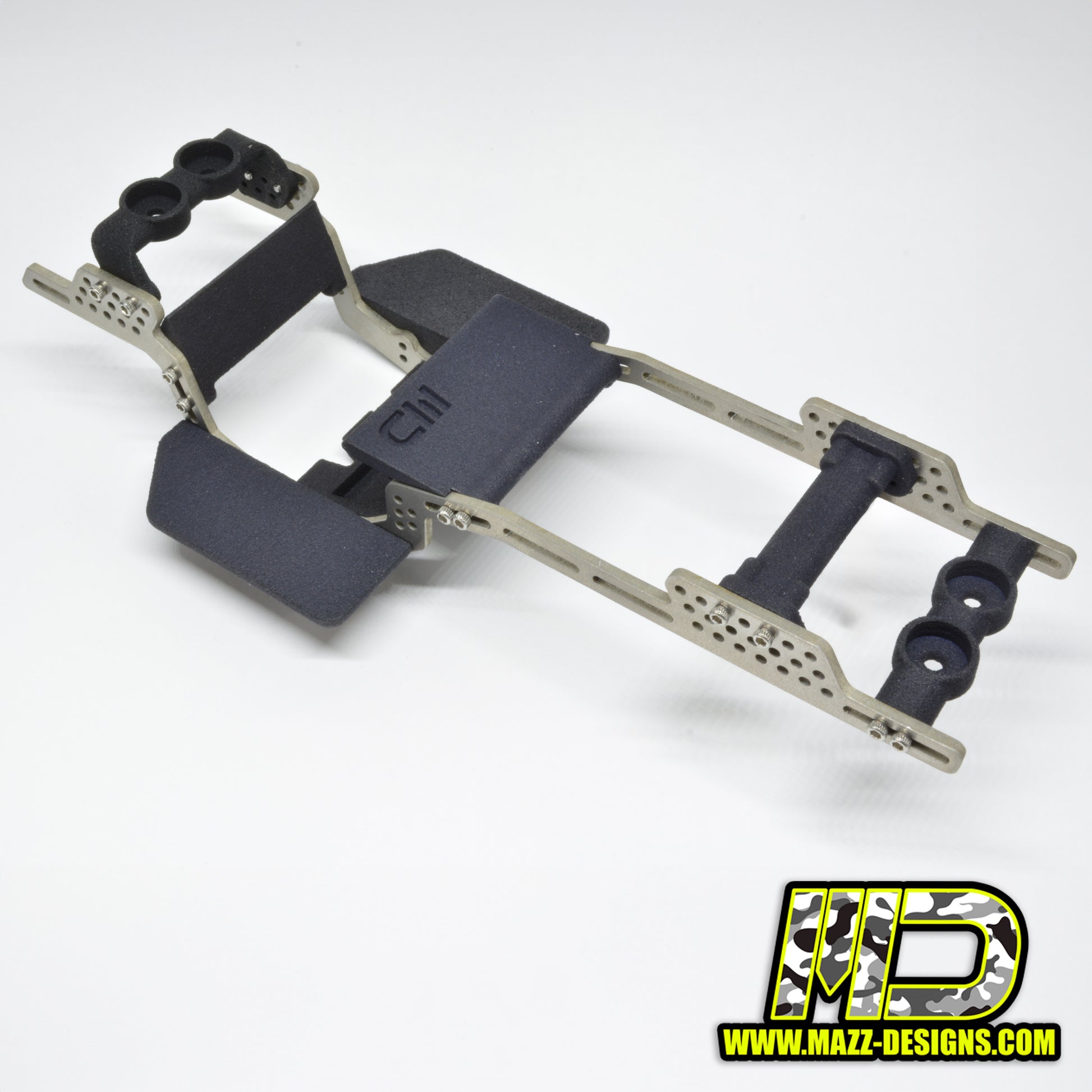 Chassis includes 2 body mag mounts, 1 raised front body mount, 1 rear flush mount, and a shock tower brace. Both mounts now have a 6 hole pattern to allow for the most amount of shock and body mounting options. Magnets included!