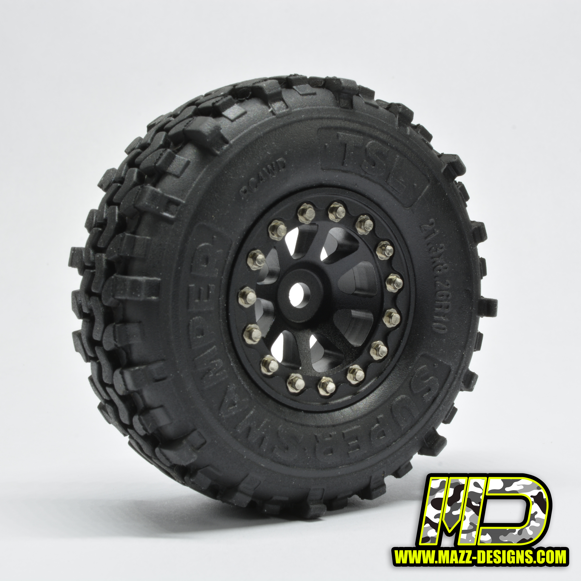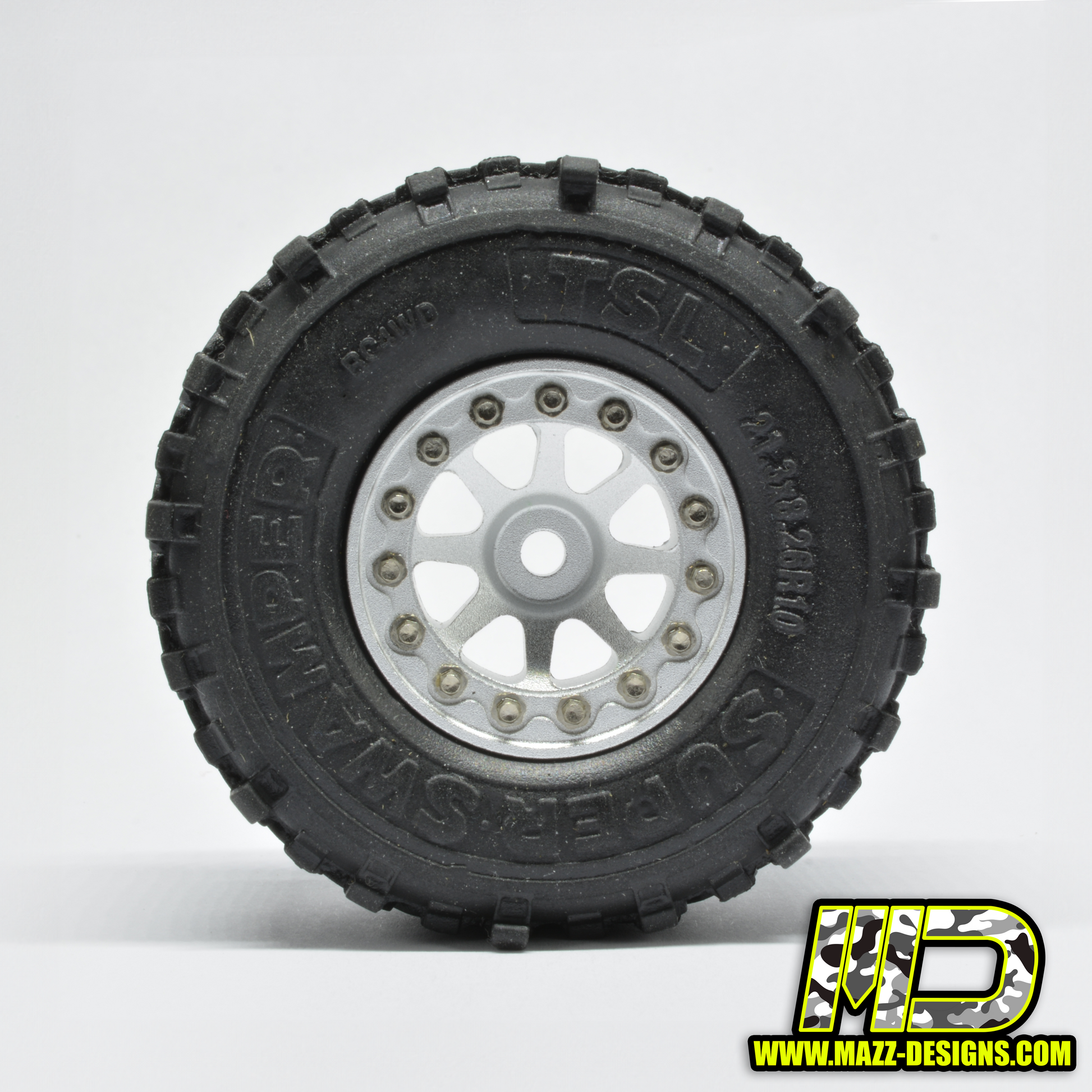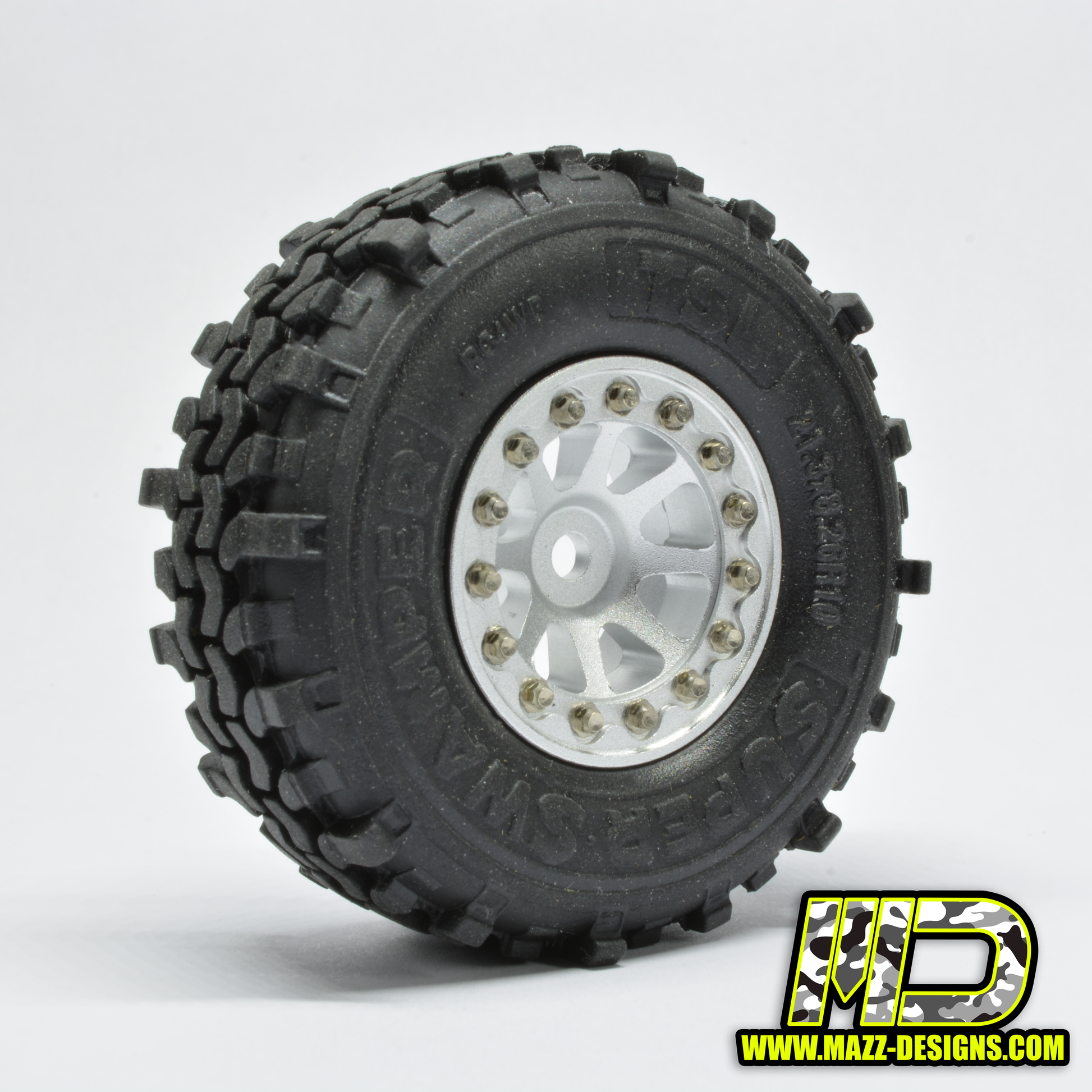The all new Venom wheel is here! 1.0" wheel comes with our signature wavy beadlock ring and brass inner rings for added weight. Also included is standard hardware that we recommend using in a 4 bolt star pattern to set the bead. Then install scale hardware with supplied tool. Then remove the 4 initial standard screws and replace with scale screws. Please visit my YouTube channel for a full install tutorial video.